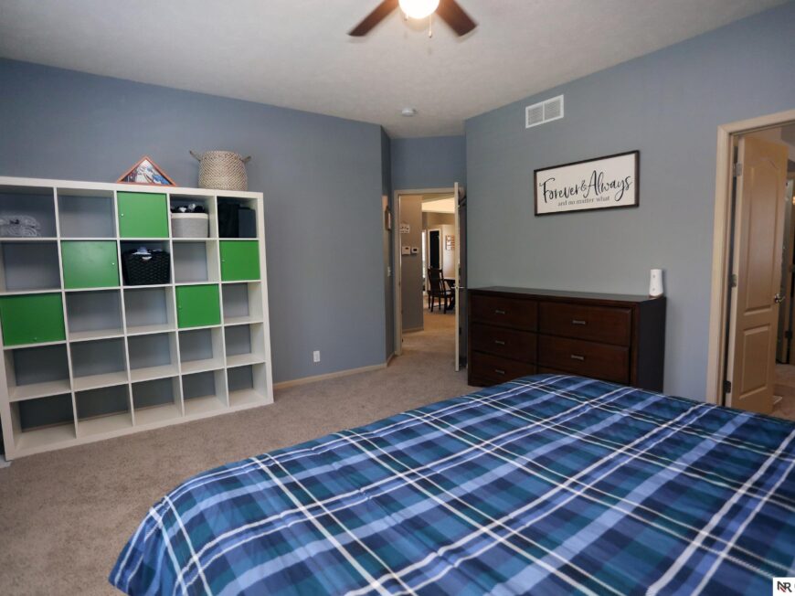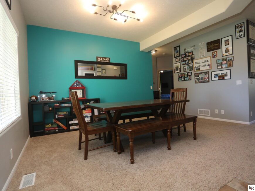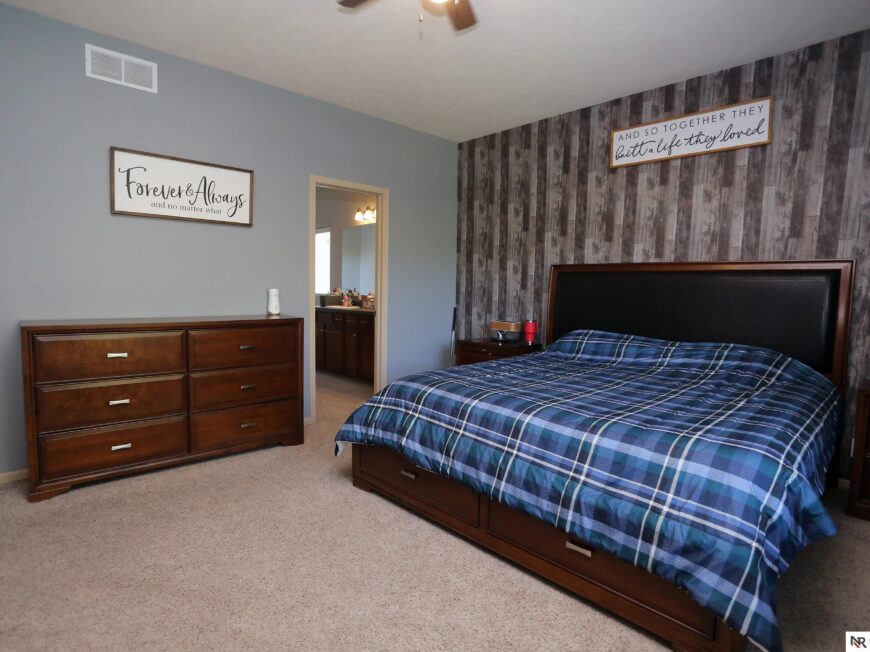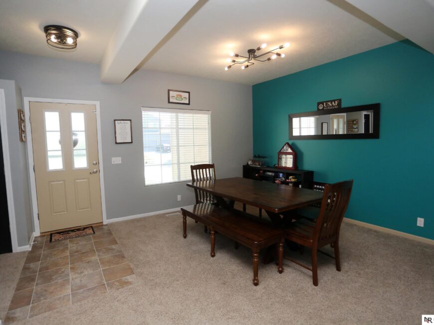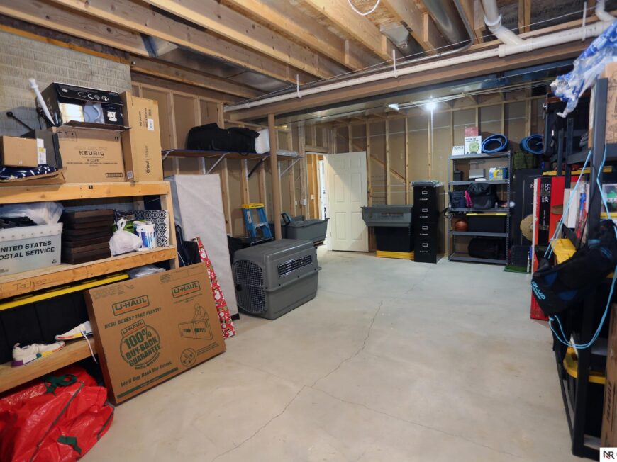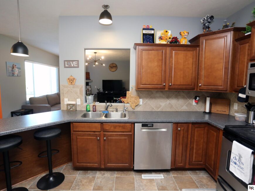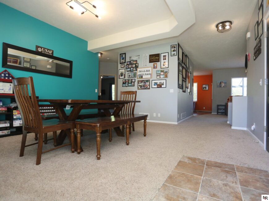 No back yard neighbors at this immaculate, move-in ready walkout ranch in popular Williamsburg! Originally built by Celebrity Homes in 2010, this large ranch with an open floor plan, modern kitchen, split-bedroom layout, and finished basement is ready for a new owner to love. Great curb appeal, lush lawn, low traffic, and conveniently located. The main floor includes a large great room with cozy corner fireplace, open kitchen with dark wood cabinetry, 2 bedrooms and a main bath on one side of the home, and a spacious primary suite on the other side. Finished walkout basement adds a large rec room, a unique playroom with built-in rock walls, and tons of additional storage space. Large deck with overhead structure overlooks a flat back yard backing to trees – providing amazing privacy and tranquility. Terrific location just 2.5 miles/5 minutes from Offutt AFB, with quick access to HWY 75. All appliances included! Potential VA Loan assumption for qualified veterans.