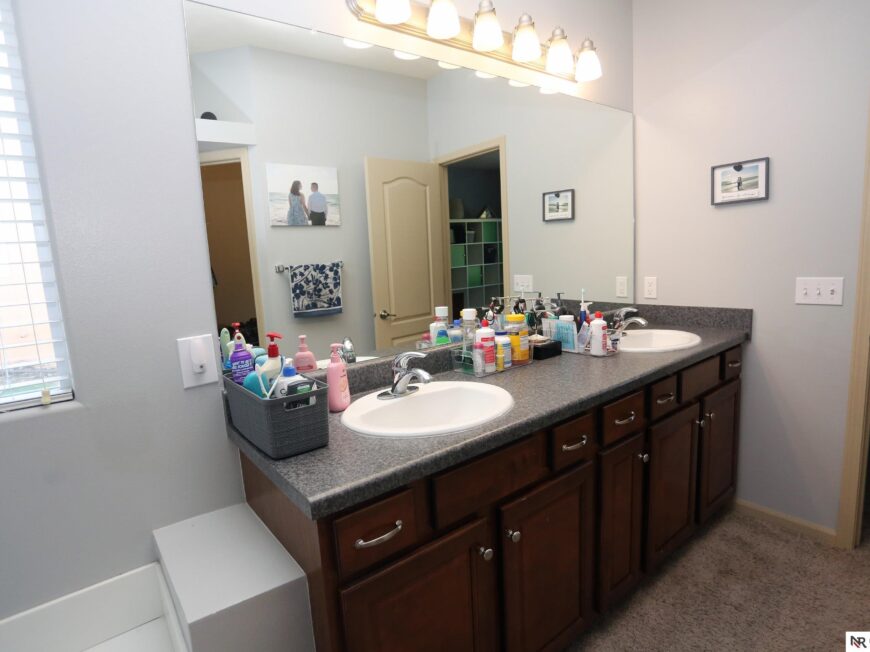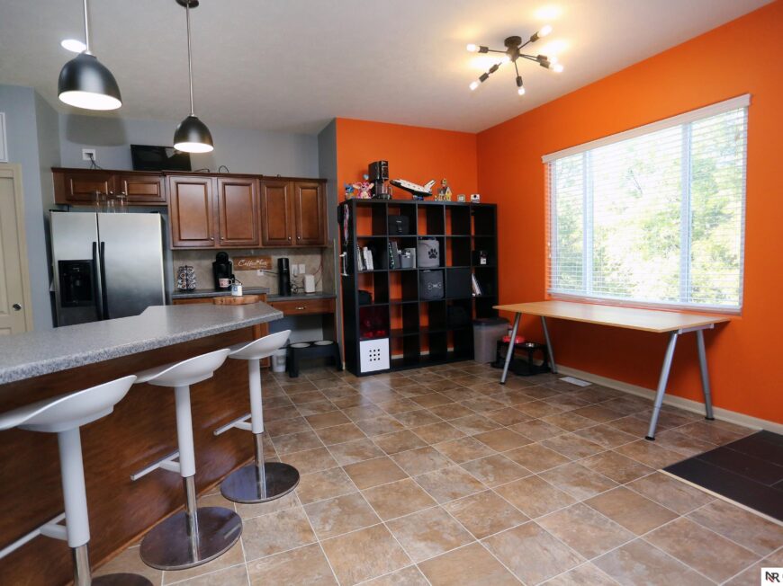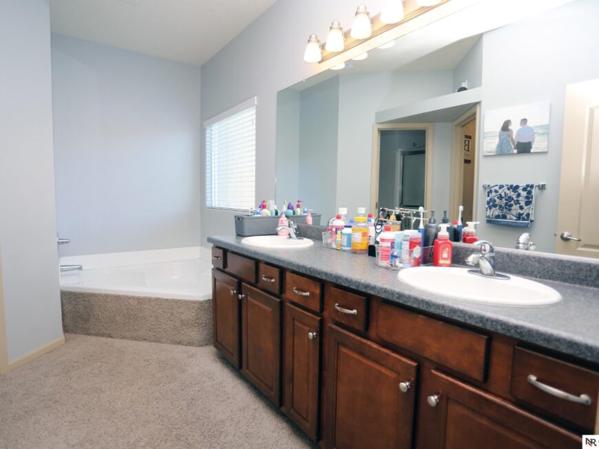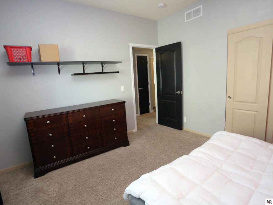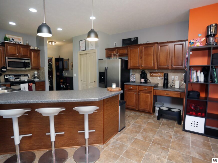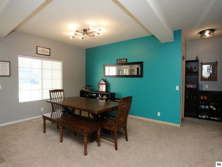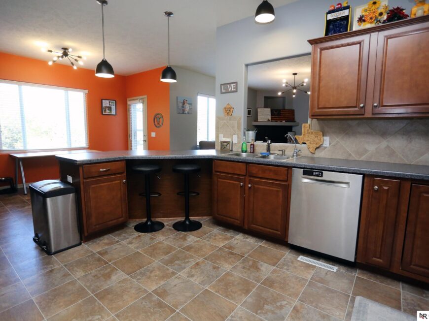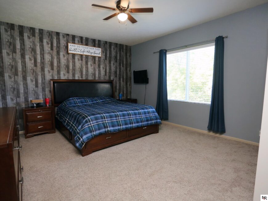 No back yard neighbors at this immaculate, move-in ready walkout ranch in popular Williamsburg! Originally built by Celebrity Homes in 2010, this large ranch with an open floor plan, modern kitchen, split-bedroom layout, and finished basement is ready for a new owner to love. Great curb appeal, lush lawn, low traffic, and conveniently located. The main floor includes a large great room with cozy corner fireplace, open kitchen with dark wood cabinetry, 2 bedrooms and a main bath on one side of the home, and a spacious primary suite on the other side. Finished walkout basement adds a large rec room, a unique playroom with built-in rock walls, and tons of additional storage space. Large deck with overhead structure overlooks a flat back yard backing to trees – providing amazing privacy and tranquility. Terrific location just 2.5 miles/5 minutes from Offutt AFB, with quick access to HWY 75. All appliances included! Potential VA Loan assumption for qualified veterans.