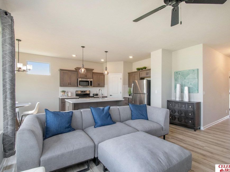 Welcome to The Jordan by Celebrity Homes. This Ranch Design offers 3 bedrooms on the main floor (2 on one side, 1 on the other)…with privacy for the Owner’s Suite! The JORDAN Design has a spacious main floor Gathering Room leading into an Eat-In Island Kitchen and Dining Area. And with Raised Ceilings towering over 9’, the main floor seems even more spacious. Need even more space, YOU GOT IT with the option to Finish the Basement with a Rec Room, Bedroom and 3/4 Bath. Owner’s Suite is appointed with a walk-in closet, ¾ Privacy Bath Design with a Dual Vanity. Features of this 3 Bedroom, 2 Bath Home Include: 2 Car Garage with a Garage Door Opener, Refrigerator, Washer/Dryer Package, Quartz Countertops, Luxury Vinyl Panel Flooring (LVP) Package, Sprinkler System, Extended 2-10 Warranty Program, 3/4 Bath Rough-In, Professionally Installed Blinds, and that’s just the start! (Pictures of Model Home) Price may reflect promotional discounts, if applicable